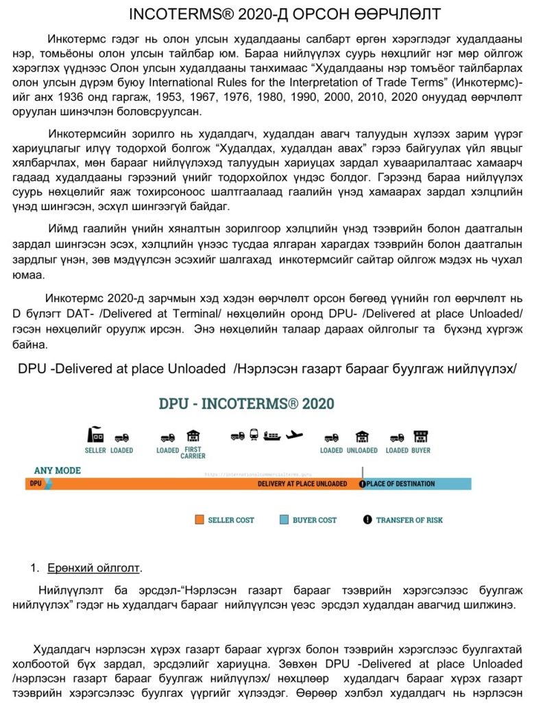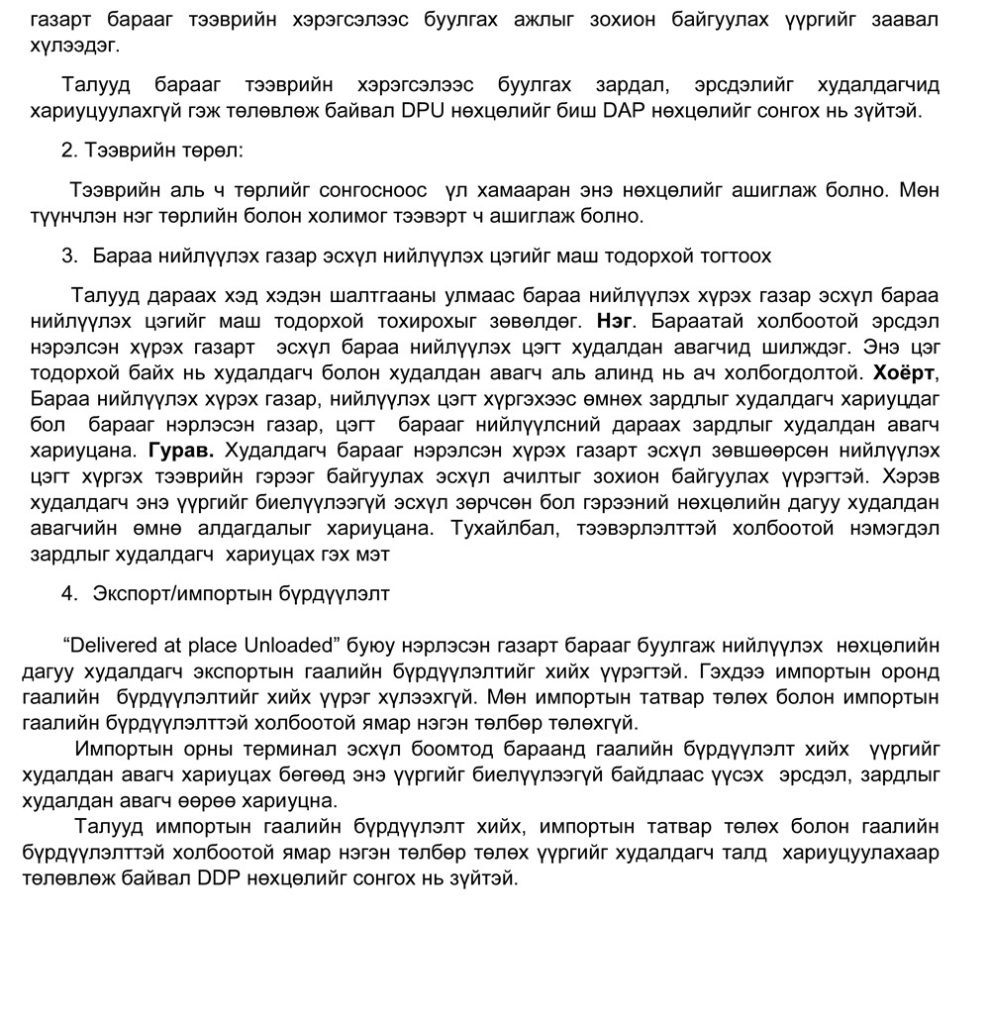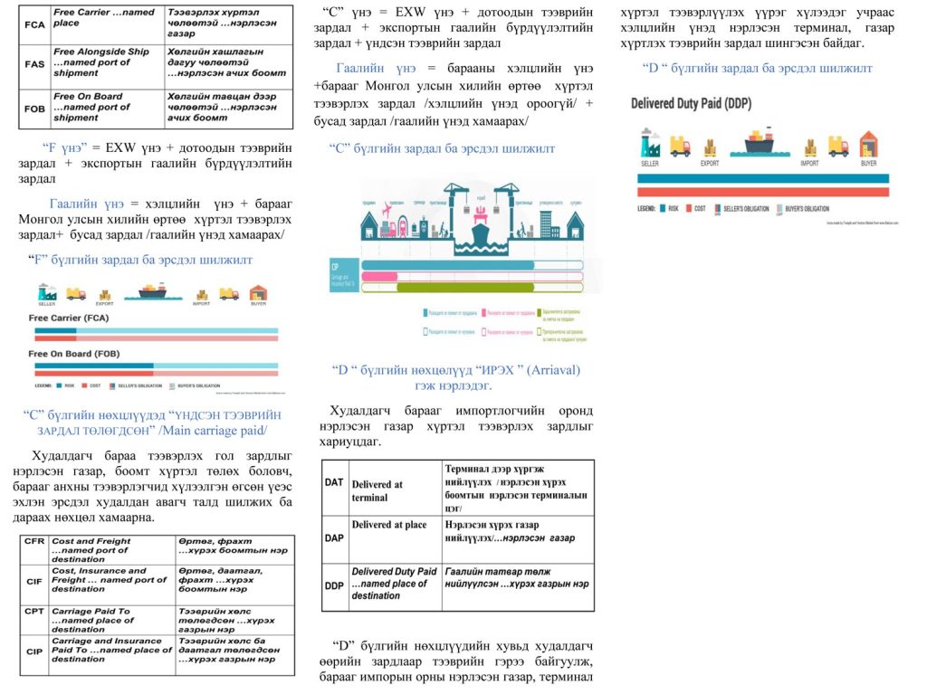1.тухайн барааг Монгол Улсын хилийн өртөө хүртэл тээвэрлэхтэй холбогдон гарсан дараахь зардал: