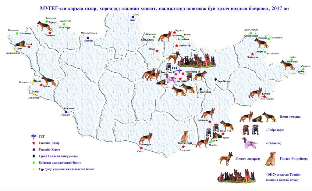 - Буянт-Ухаа дахь гаалийн газрын Эрэлч нохой хариуцсан ГУБ мөс /ice/ төрлийн мансууруулах бодисыг улсын хилээр нэвтрүүлэхийг завдсан үйлдлийг таслан зогсоосон. 2016 он