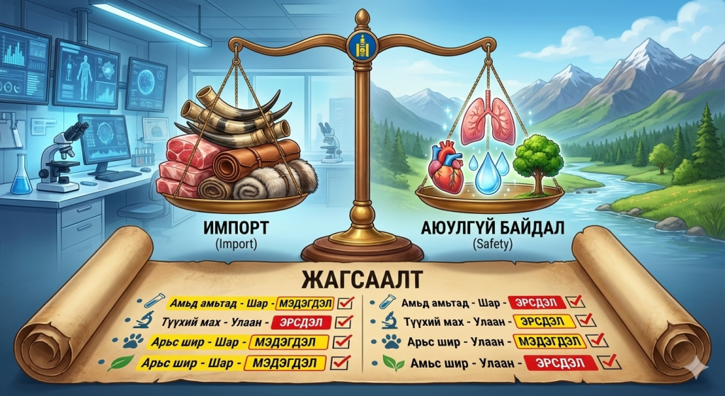 Импортын мэдэгдэл олгох амьтан, тэдгээрийн гаралтай түүхий эд бүтээгдэхүүний жагсаалт