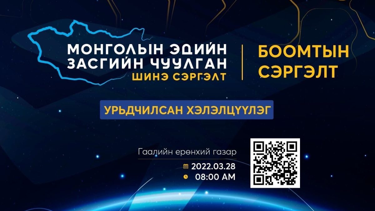 Шинэ сэргэлтийн бодлогыг дотоодын болон Олон улсын хөрөнгө оруулагчдад танилцуулах “Монголын Эдийн засгийн чуулган-2022” 4-р сарын 7,8-ний өдрүүдэд зохион байгуулагдана. Эдийн засгийн чуулганы урьдчилсан хэлэлцүүлэг “БООМТЫН СЭРГЭЛТ” сэдвээр 3-р сарын 28-ны даваа гарагт Гаалийн ерөнхий газар 08:00 цагт эхэлнэ. Та бүхнийг боомтын сэргэлт урьдчилсан хэлэлцүүлэгт оролцохыг урьж байна.