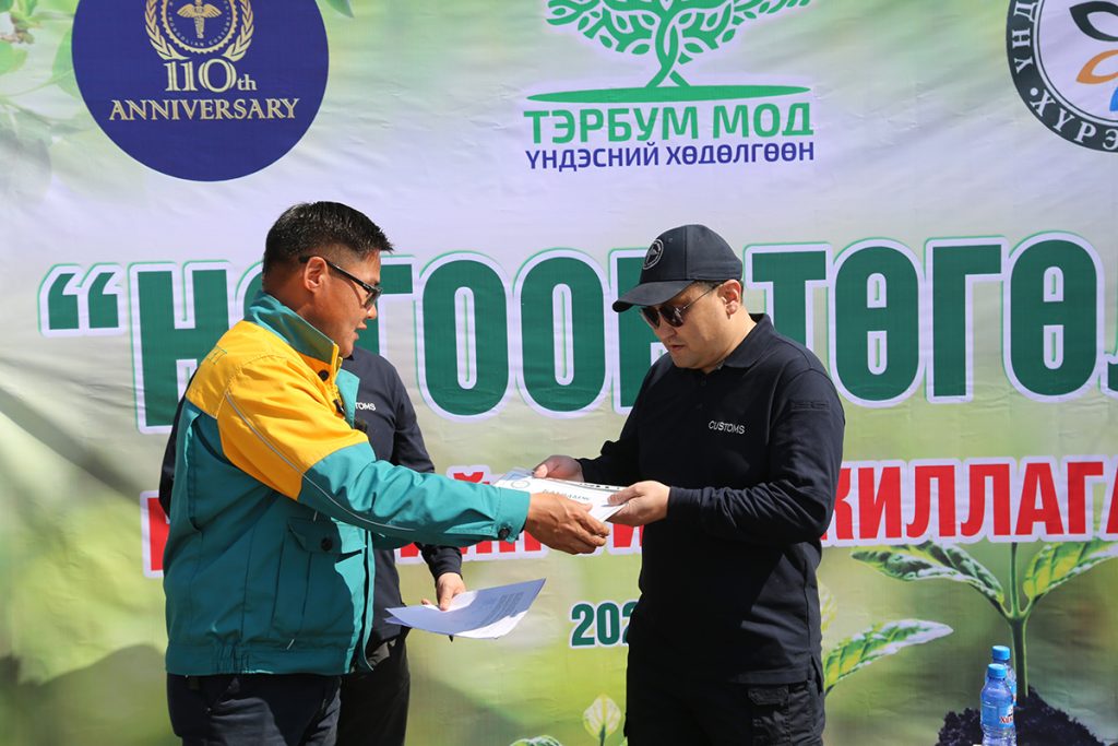Энэ аяны эхлэл болгож гаалийн албан хаагчид нарс, гацуур, голт бор, буйлс, монос, хайлаас зэрэг 6 төрлийн 1500 гаруй модыг Үндэсний цэцэрлэгт хүрээлэнд суулгахаар төлөвлөж эхний суулгацаа өнөөдөр тарьж нийслэл хотынхоо ногоон байгууламжид өнгө нэмлээ.