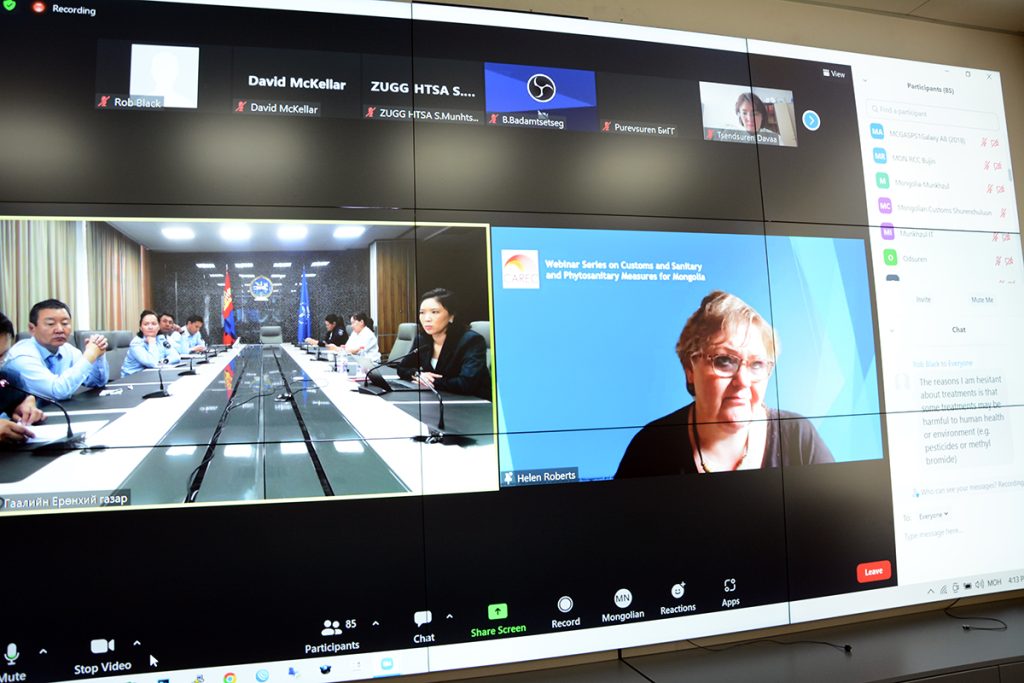 Зөвлөх үйлчилгээний хүрээнд “Гааль ба амьтан, ургамлын эрүүл ахуйн арга хэмжээ” чиглэлээр Монголд зориулсан цуврал вебинар сургалтыг зохион байгуулах ба эхний ээлжинд “Хилийн нэгдсэн удирдлага болон ургамал, амьтан, тэдгээрийн гаралтай бүтээгдэхүүний эрсдэлийн үнэлгээний туршлага” сэдэвт сургалтыг 2022 оны 06 дугаар сарын 16, 17-ны өдрүүдэд зохион байгуулж хорио цээрийн байгууллагын чиг үүрэг, амьтан, ургамлын эрүүл ахуйн эрсдэлийн үнэлгээг гаалийн байгууллагад нэгтгэсэн орнуудын туршлагыг судлав
