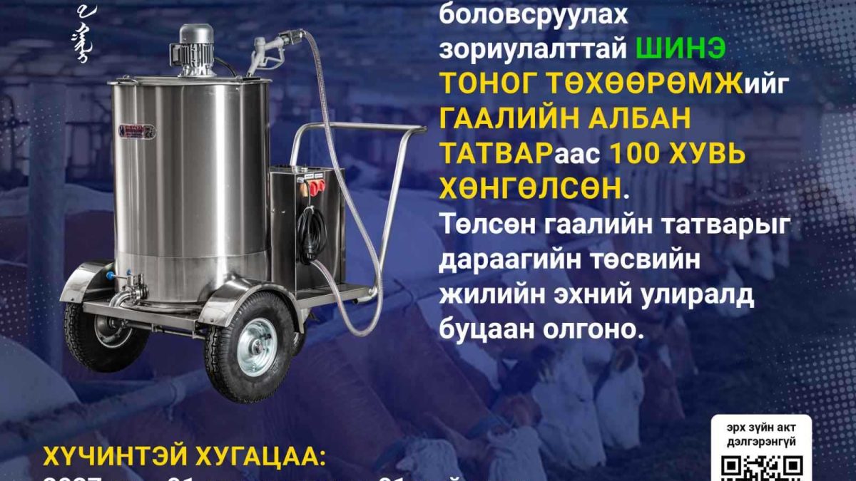 ХҮНС, ХӨДӨӨ АЖ АХУЙН ГАРАЛТАЙ ТҮҮХИЙ ЭД БОЛОВСРУУЛАХ ЗОРИУЛАЛТТАЙ ШИНЭ ТОНОГ ТӨХӨӨРӨМЖ-ИЙН ИМПОРТЫН ГААЛИЙН ТАТВАРЫГ ДАРАА ЖИЛИЙН ЭХНИЙ УЛИРАЛД БУЦААН ОЛГОНО