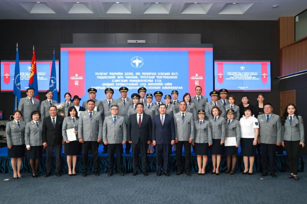 Тулгар төрийн 2232, Их Монгол Улс байгуулагдсаны 817, Ардын хувьсгалын 102 жилийн ойн Үндэсний их баяр наадмын босгон дээр байгууллагын алба хаагчдад шагнал гардуулах ёслолын үйл ажиллагаа өнөөдөр /2023.07.07/ Гаалийн ерөнхий газрын ёслол хүндэтгэлийн танхимд боллоо.
