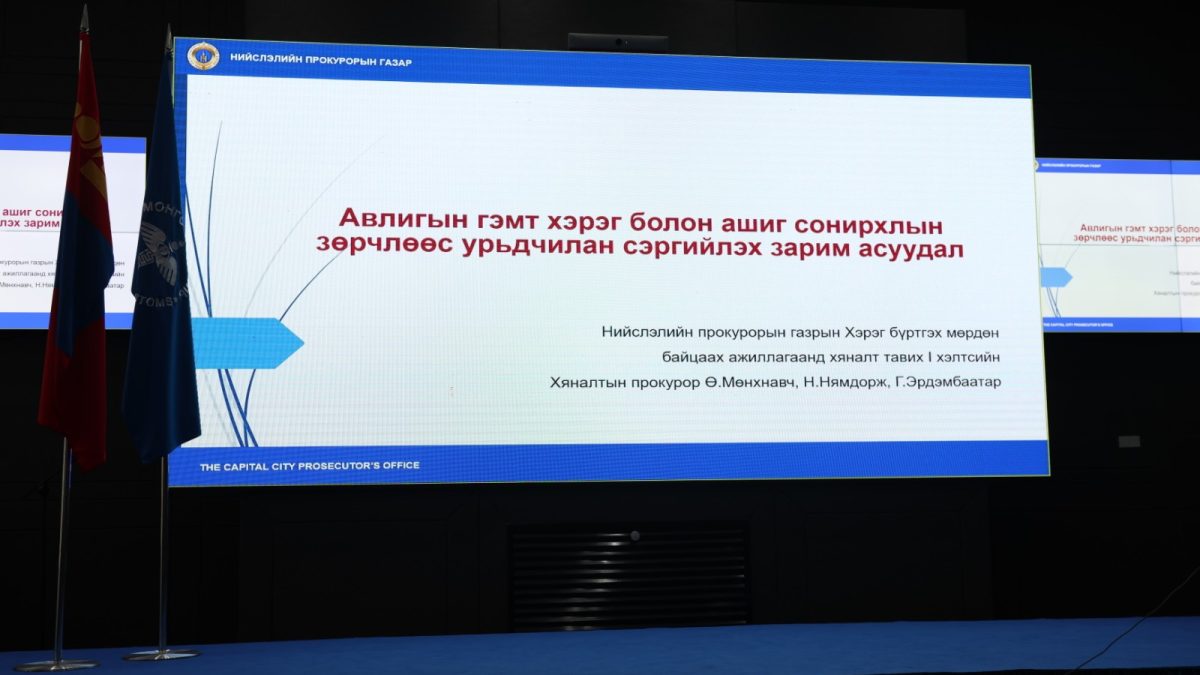 Гаалийн байгууллагын 2024 оны авлигын эсрэг үйл ажиллагааны төлөвлөгөөний 3.2-т Байгууллагын дотоод хяналтын механизмыг сайжруулж, албан хаагчдыг авлига, ашиг сонирхлоос ангид байхад чиглэсэн арга хэмжээг хэрэгжүүлэх ажлын хүрээнд Нийслэлийн прокурорын газрын Хэрэг бүртгэх, мөрдөн байцаах ажиллагаанд хяналт тавих I хэлтсийн хяналтын прокурор, хууль цаазын ахлах зөвлөх Н.Нямдорж, хяналтын прокурор, хууль цаазын ахлах зөвлөх Г.Билгүүжин, хяналтын прокурор, хууль цаазын ахлах зөвлөх Ө.Мөнхнавч нар гаалийн байгууллагын албан хаагчдад “Авлигын гэмт хэрэг болон ашиг сонирхлын зөрчлөөс урьдчилан сэргийлэх зарим асуудал” сэдвээр сургалт хийв.