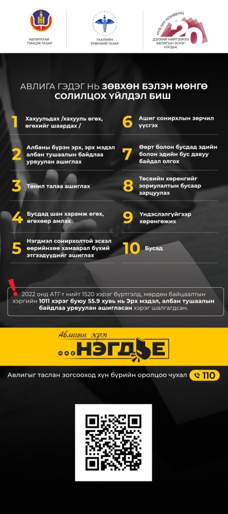 Авлигыг таслан зогсооход хүн бүрийн оролцоо чухал 📞 110
