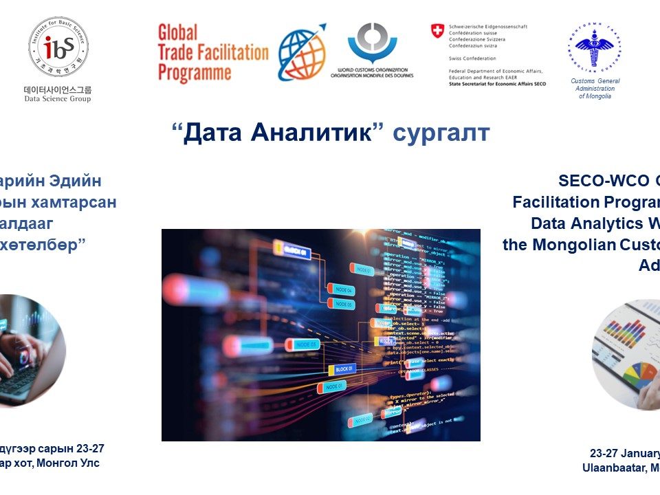 Published by Editor on January 27, 2023 ДАТА АНАЛИТИКИЙН СУРГАЛТ БОЛЛОО Дэлхийн гаалийн байгууллага болон Швейцарын эдийн засгийн асуудал эрхэлсэн Нарийн бичгийн дарга нарын газрын хамтарсан “Глобал худалдааг хөнгөвчлөх хөтөлбөр”-ийн хүрээнд “Дата аналитик” […]