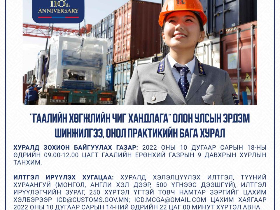 “ГААЛИЙН ХӨГЖЛИЙН ЧИГ ХАНДЛАГА” ОЛОН УЛСЫН ЭРДЭМ ШИНЖИЛГЭЭ, ОНОЛ ПРАКТИКИЙН БАГА ХУРАЛД УРЬЖ БАЙНА Шинэ үеийн гаалийн байгууллага үүсэж хөгжсөний 110 жилийн түүхт ойг тохиолдуулан илтгэл