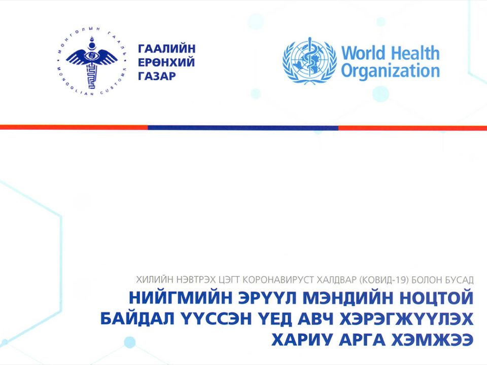 “ХИЛИЙН НЭВТРЭХ ЦЭГТ КОРОНАВИРУСТ ХАЛДВАР (КОВИД-19) БОЛОН БУСАД НИЙГМИЙН ЭРҮҮЛ МЭНДИЙН НОЦТОЙ БАЙДЛЫН ҮЕД АВЧ ХЭРЭГЖҮҮЛЭХ ХАРИУ АРГА ХЭМЖЭЭ” СЭДЭВТ СУРГАЛТ БОЛЛОО Олон улсын эрүүл мэндийн