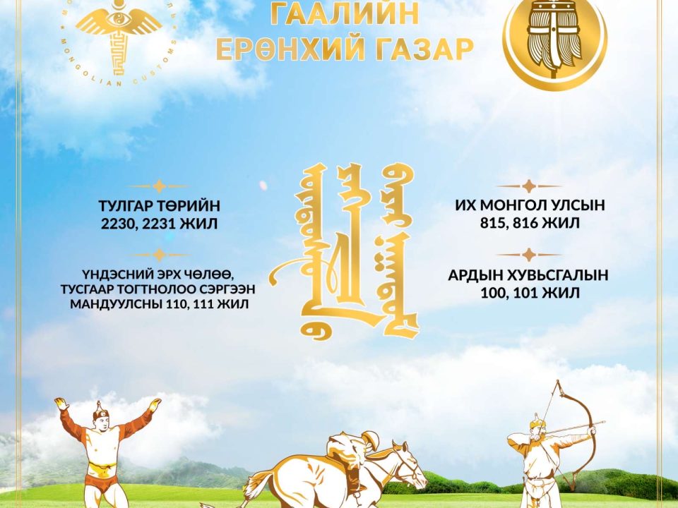 Тулгар төрийн 2230, 2231, Их Монгол Улсын 815, 816, Үндэсний эрх чөлөө, тусгаар тогтнолоо сэргээн мандуулсны 110, 111, Ардын хувьсгалын 100, 101 жил, Шинэ үеийн гаалийн