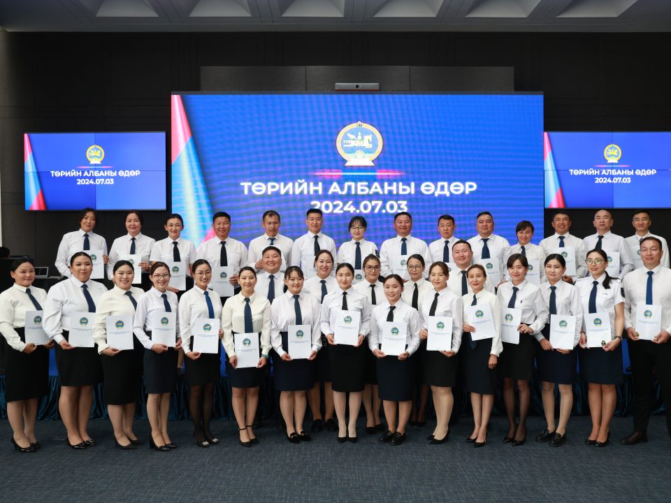 ТӨРИЙН ЖИНХЭНЭ АЛБАН ХААГЧИЙН ТАНГАРАГ ӨРГӨХ ЁСЛОЛЫН АЖИЛЛАГАА БОЛЛОО Монгол Улсын Засгийн газрын тогтоолоор бий болгосон Төрийн албаны өдрийг тохиолдуулан төрийн жинхэнэ албан хаагчийн тангараг өргөх