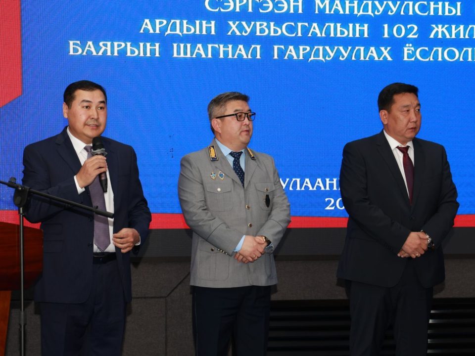 АМЖИЛТ ГАРГАСАН АЛБАН ХААГЧДЫГ ШАГНАЛАА Тулгар төрийн 2232, Их Монгол Улс байгуулагдсаны 817, Ардын хувьсгалын 102 жилийн ойн Үндэсний их баяр наадмын босгон дээр байгууллагын алба